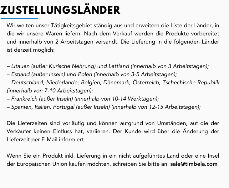 Wir liefern innerhalb von 5-15 Tagen in Länder der Europäischen Union!