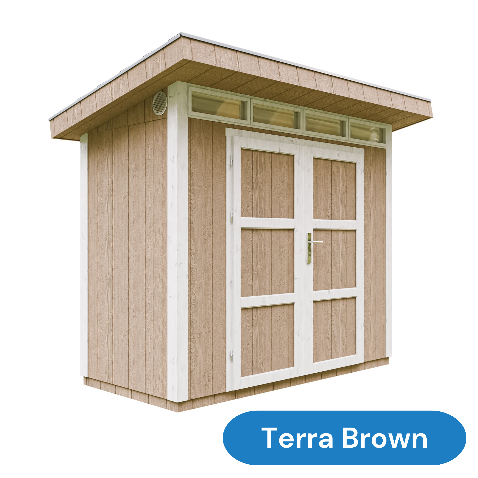 Individuell gestaltbar mit Farbauswahl: Optional ist ein Farbsatz auf Acrylbasis erhältlich – bestehend aus 2 Litern der gewünschten Wandfarbe und 1 Liter weißer Farbe für Holzdetails. Für optimalen Schutz müssen Wandpaneele und Holzverkleidungen gestrichen werden. Das Gerätehaus wird unbehandelt geliefert.