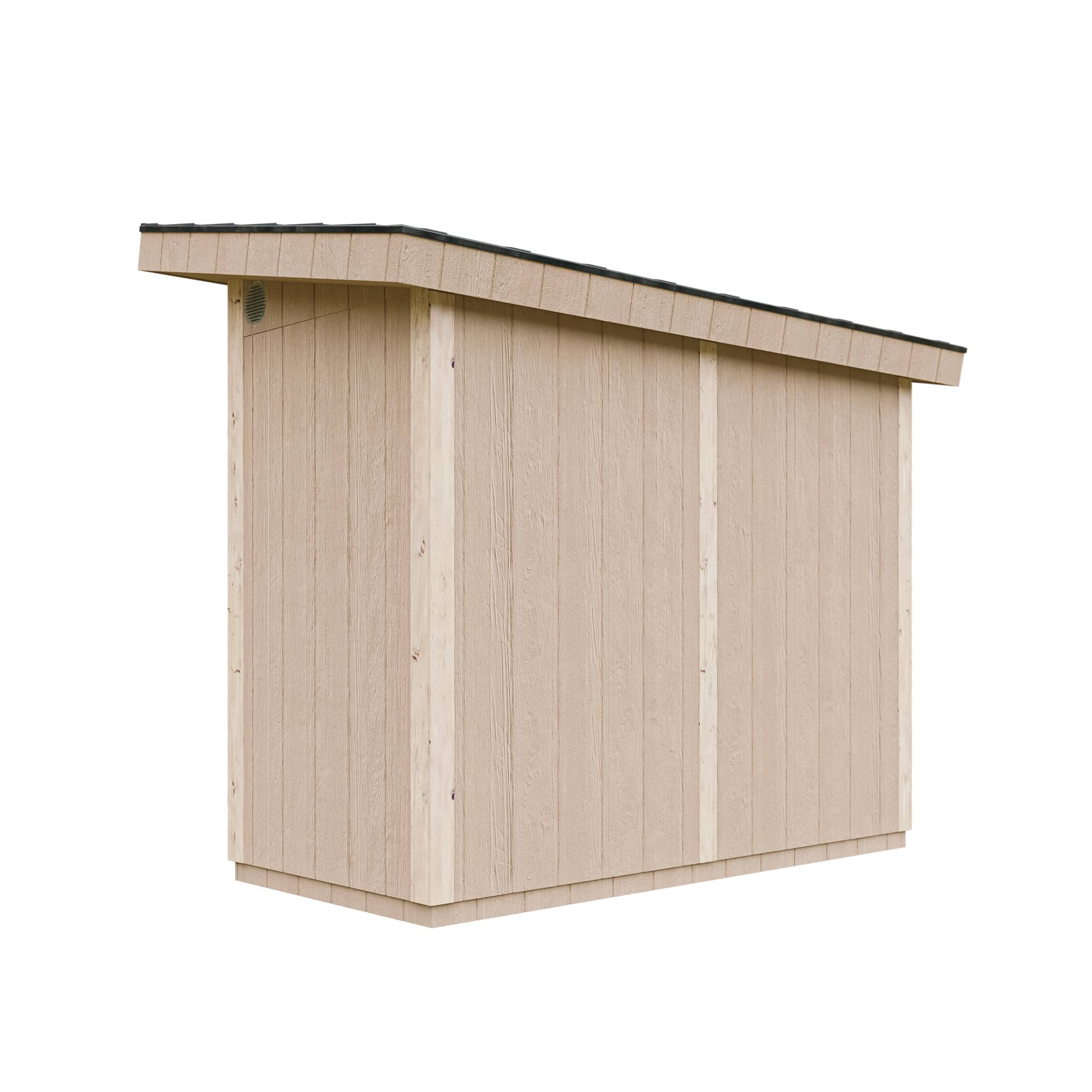Stabile Konstruktion mit Holzrahmen: Die Wände bestehen aus einem robusten 60×60 mm Holzrahmen und 10 mm dicken, grundierten SmartSide® Holzpaneelen – für langfristige Haltbarkeit und Stabilität, auch bei starkem Regen, Wind oder Schnee.