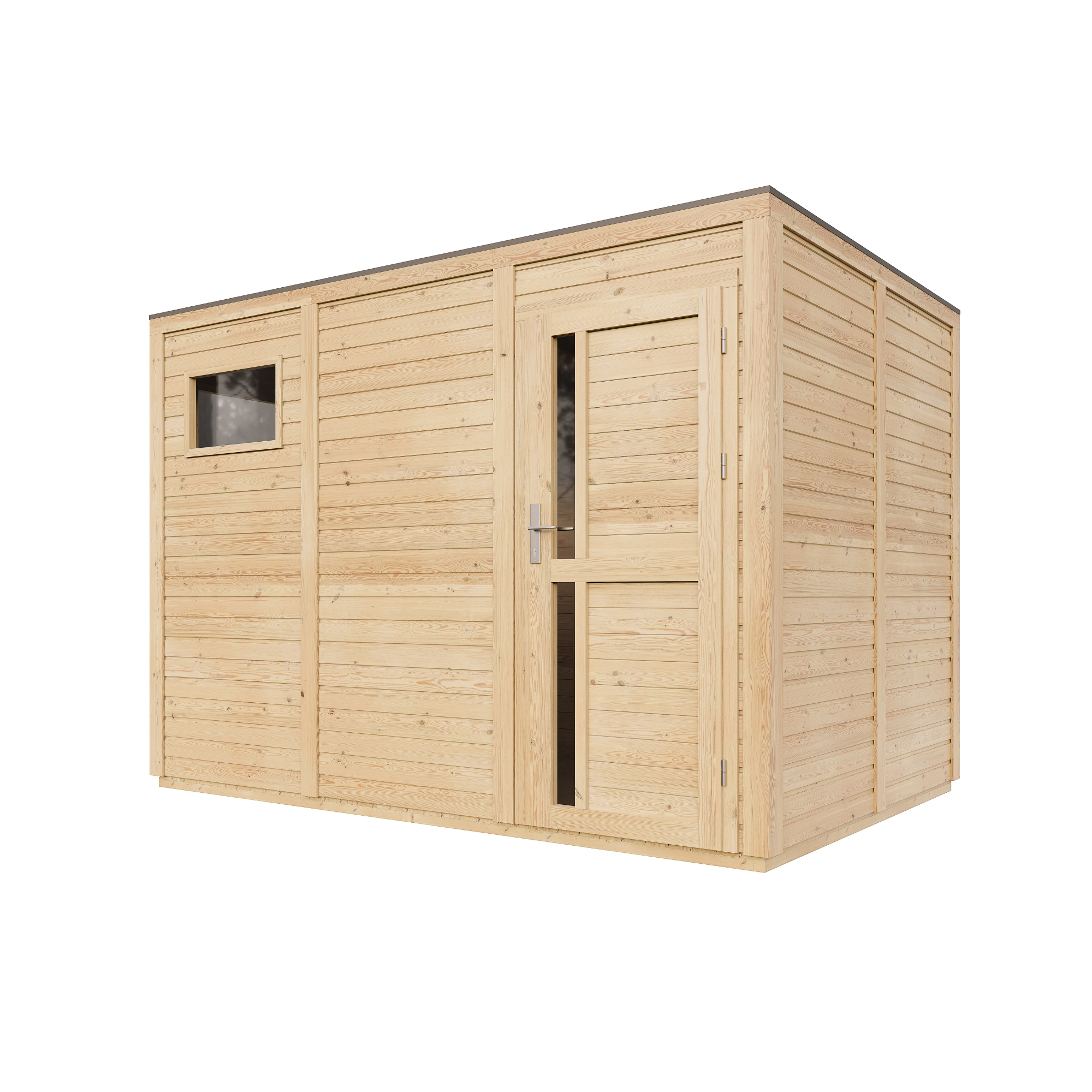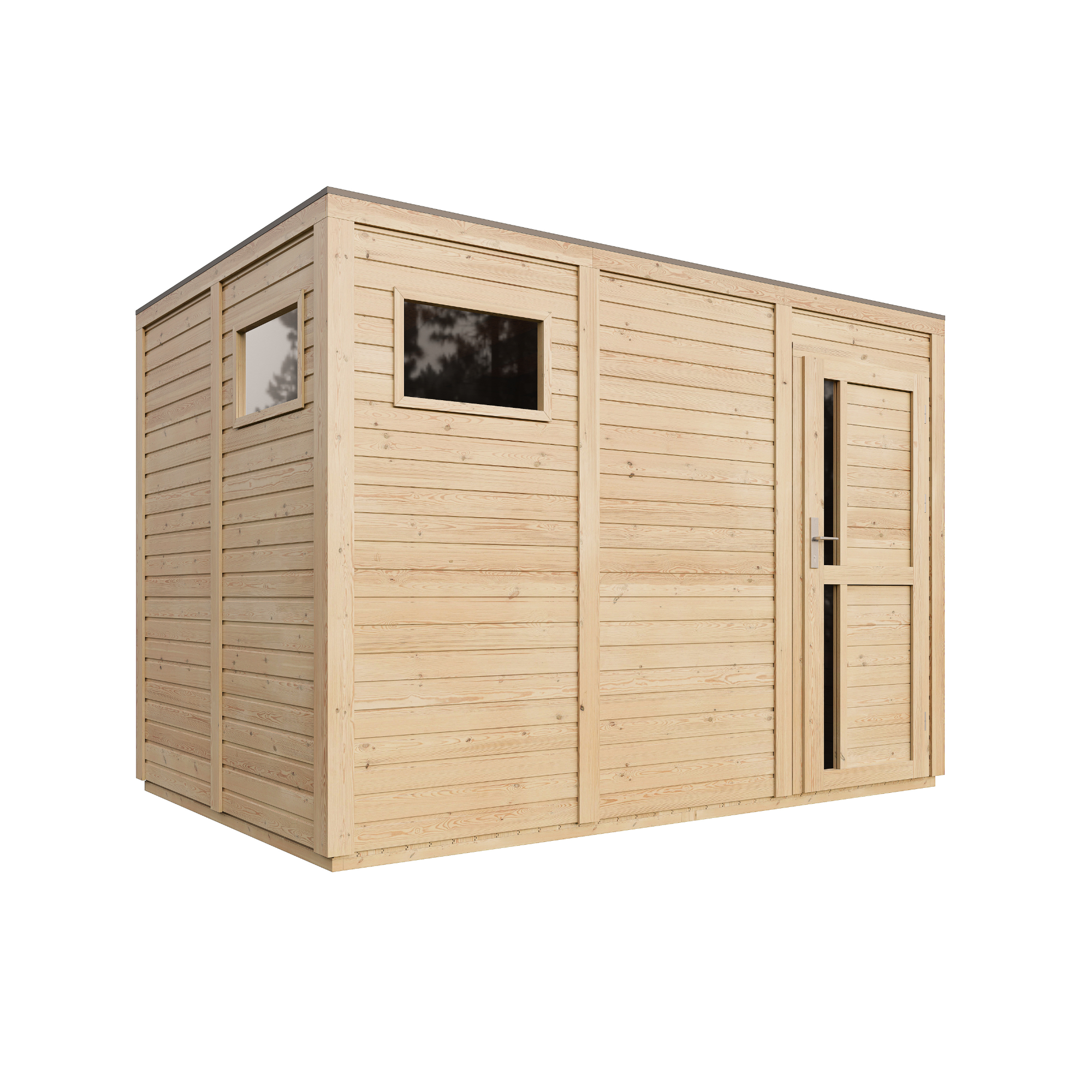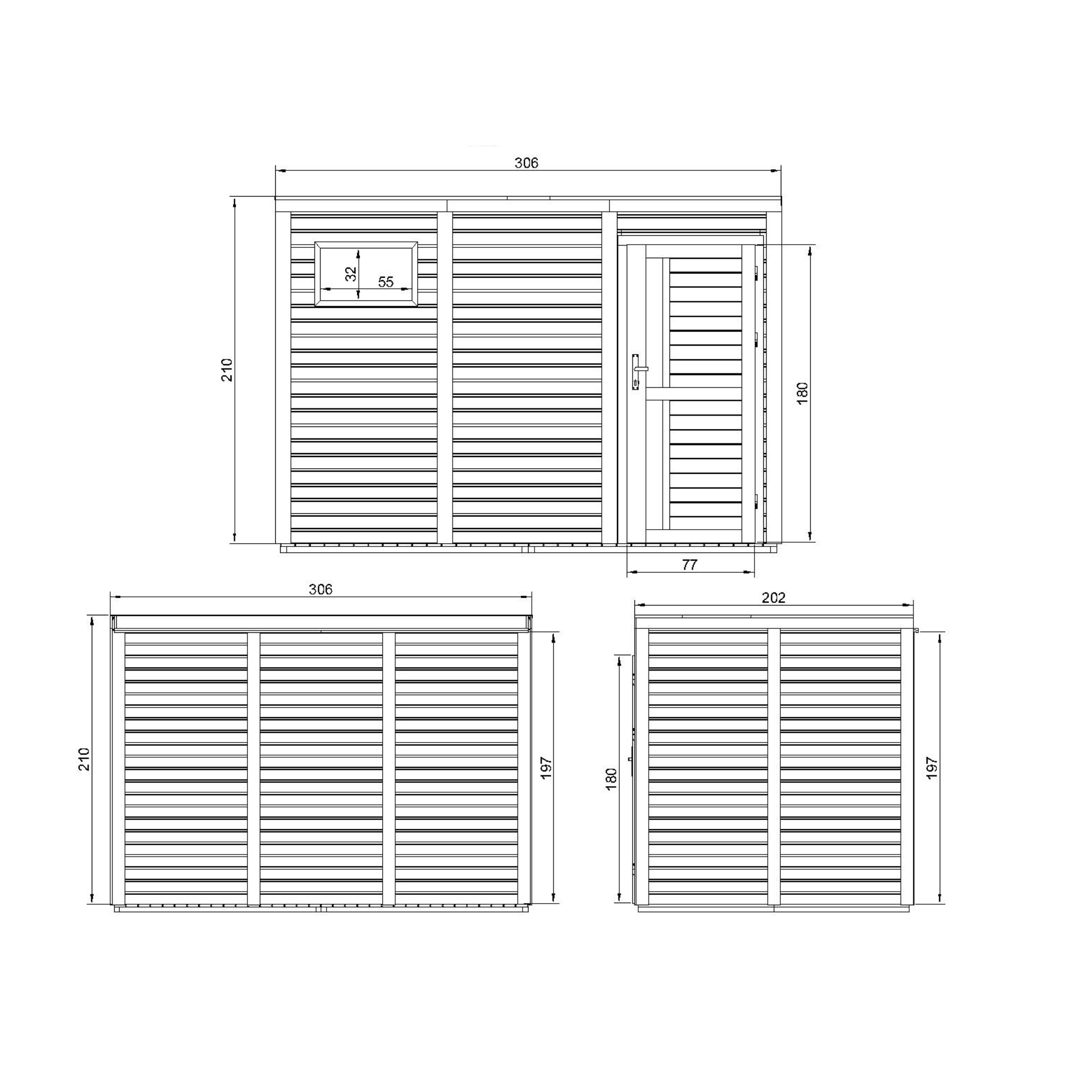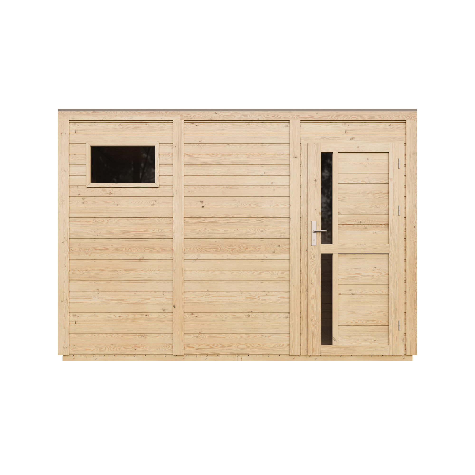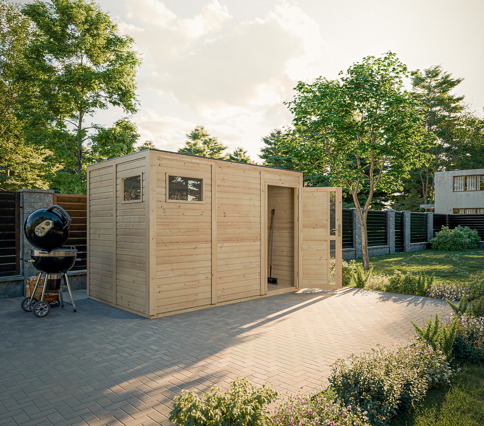 The shed is made from responsibly sourced Nordic pine or spruce. The 17 mm thick wooden wall boards provide a strong, stable structure and ensure long-lasting durability, even in challenging weather conditions.
