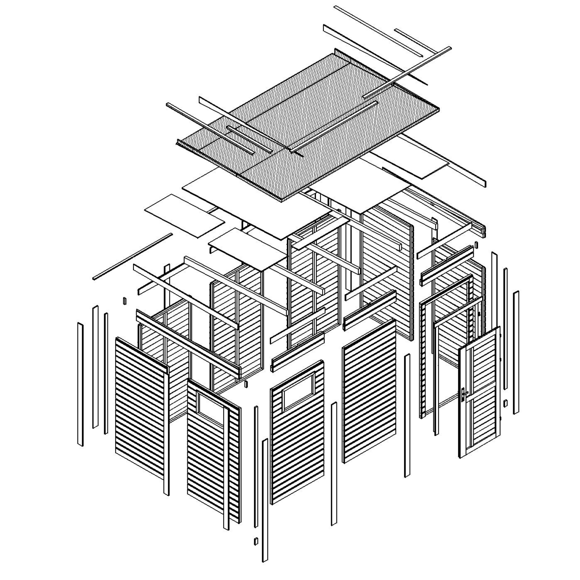 The wooden garden shed is delivered as a flat pack with pre-cut wooden components, screws, hinges, and clear assembly instructions, ensuring smooth and straightforward installation.